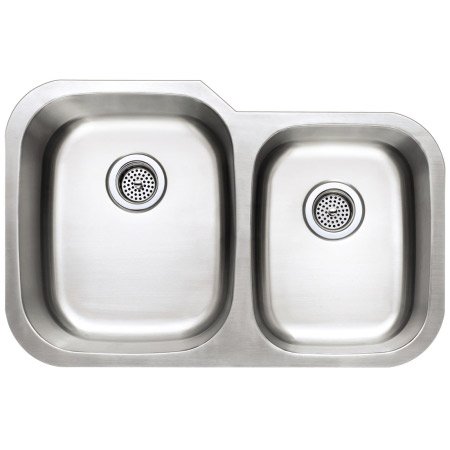 Undermount Double Basin Kitchen SinkThe PROFLO brand represents plumbing products that are designed and manufactured for "Exceeding Your Expectations." From faucets, fixtures, accessories and bathing products to repair products, pumps and behind-the-wall products, you can count on PROFLO to deliver style, quality and value.Stainless steel double bowl sinkType 304 stainless steelUndermount18 gaugeSound absorption pads and coating to minimize vibration and sound and increase durabilitySeamless designClips and template included in boxOverall Size: 31-5/8" x 20-1/2"Bowl Size Large: 15-1/2" x 18-1/2"Bowl Size Small: 12-3/4" x 16-1/4"Drain Diameter: 3-1/2"Bowl Depth Large: 8-1/2"Bowl Depth Small: 7"